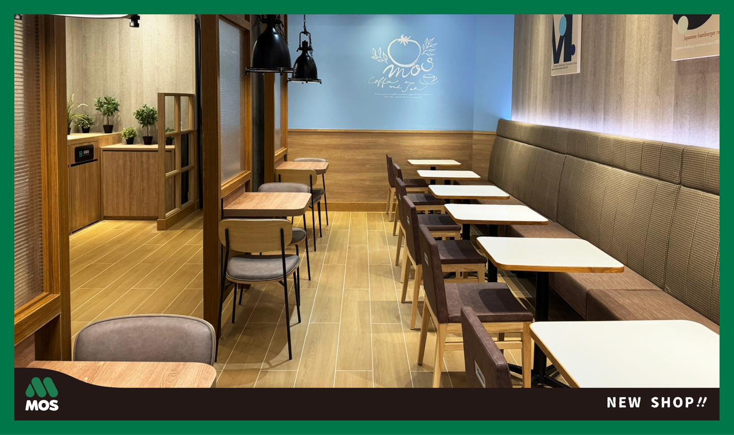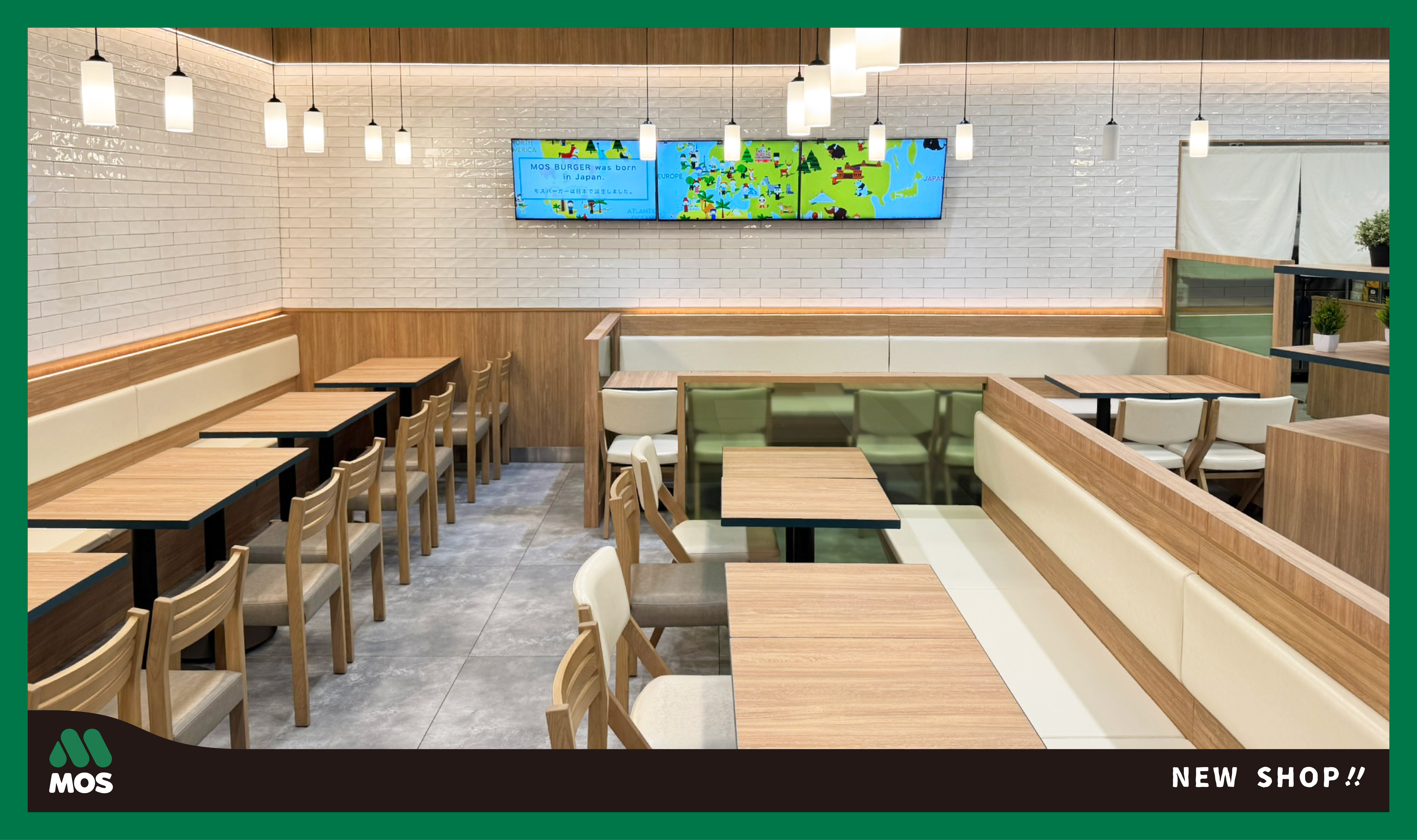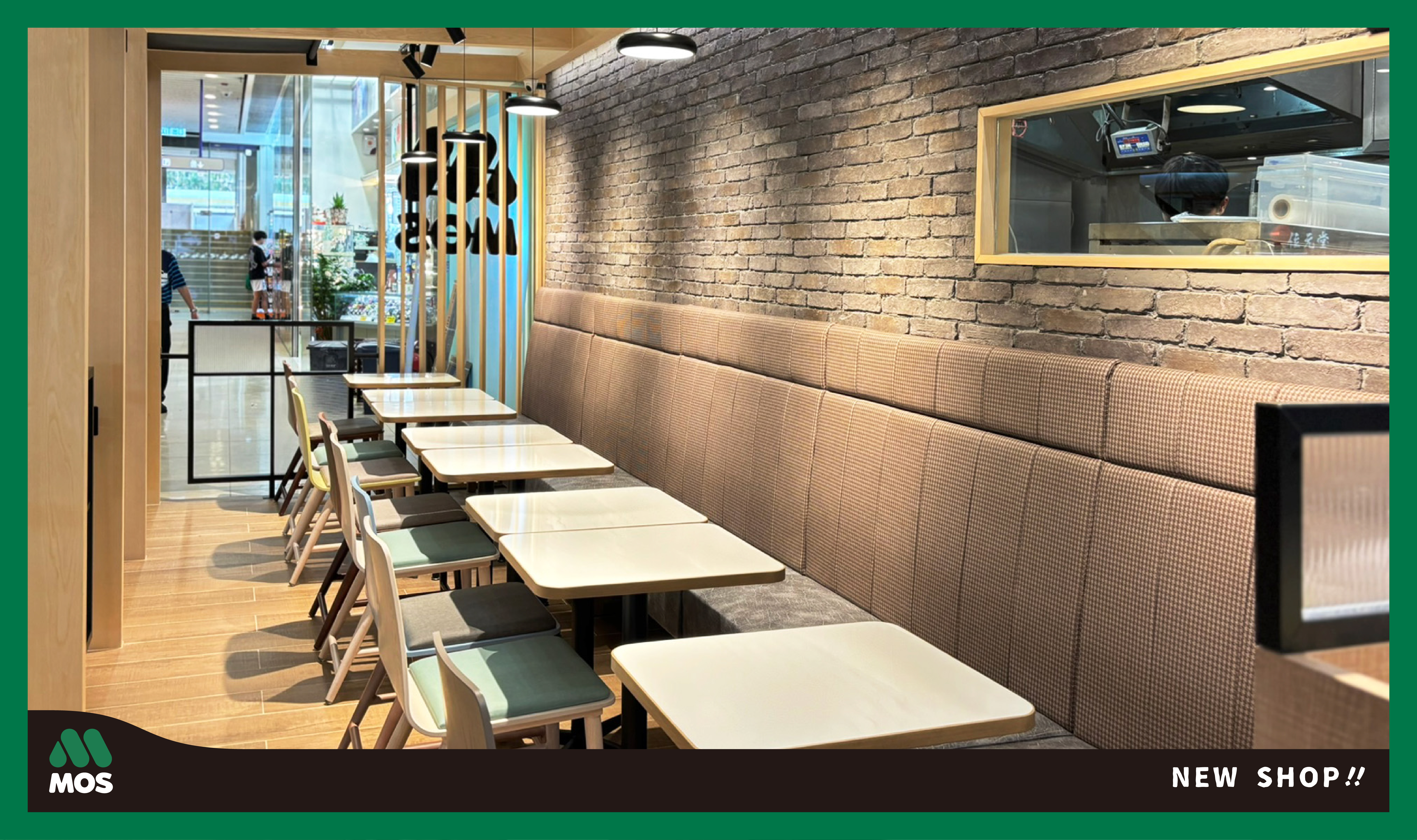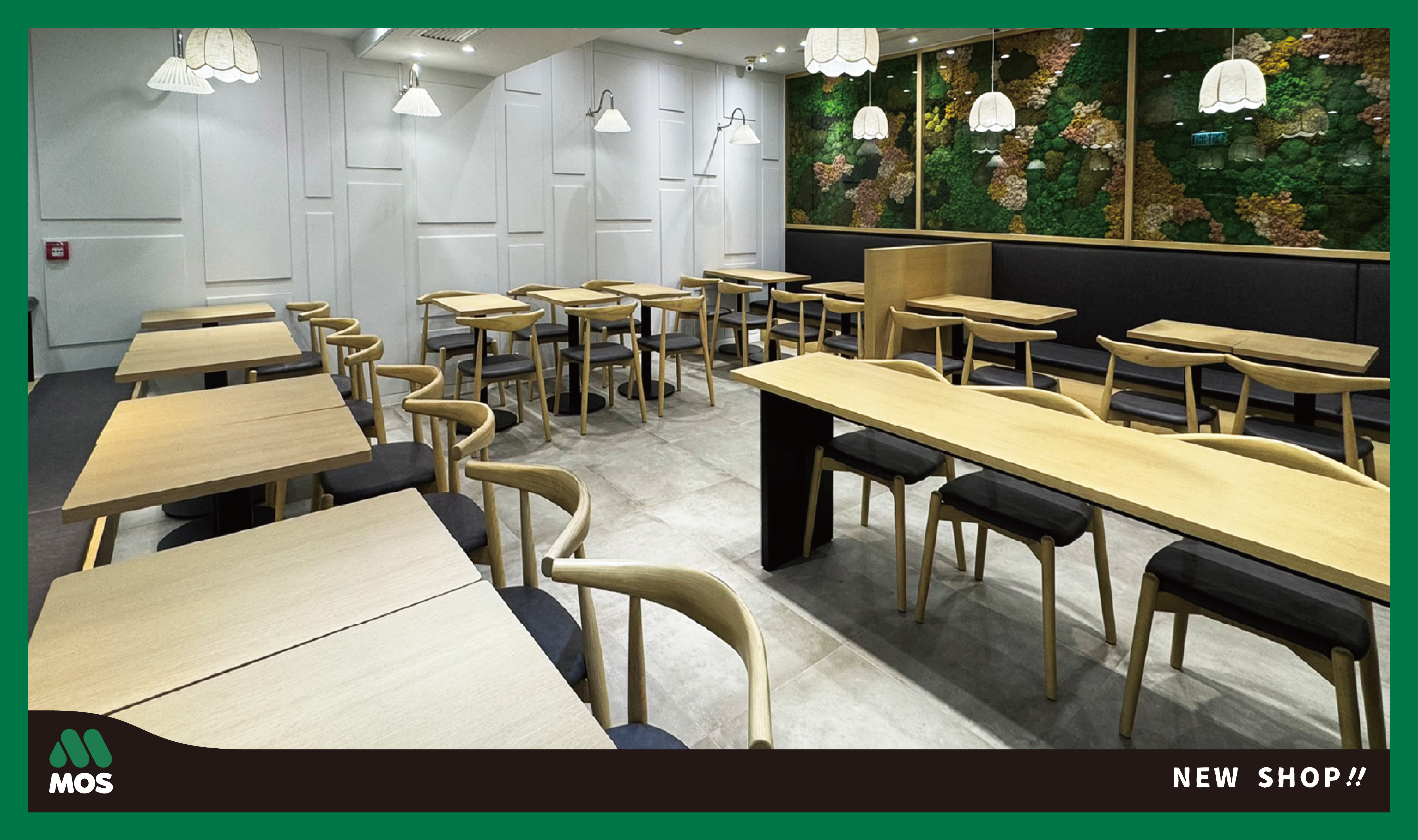 店面更新了 MOS 的簡約LOGO,而店內裝潢以山(Mountain)、海(Ocean)、太陽(Sun) 為設計構念,貫切摩斯漢堡的理念。